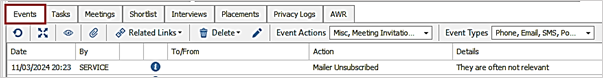 Note: If the email address is already unticked as ‘Ok to Mailshot’, the event will still be logged.