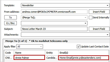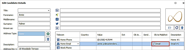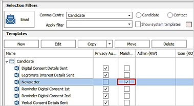 Note: Infinity Comms Centre templates ticked as ‘Mailshot’ require the candidate’s/contact’s email address to be ticked as ‘OK to Mailshot’, otherwise the send is prevented.